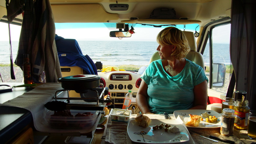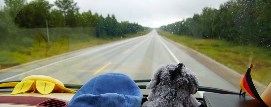 Gleichzeitig mit den Reisenden dieses Fahrzeugs haben wir unseren Sprinter im Hafen von Halifax abgeholt. Wiedergesehen auf einem Wanderparkplatz.