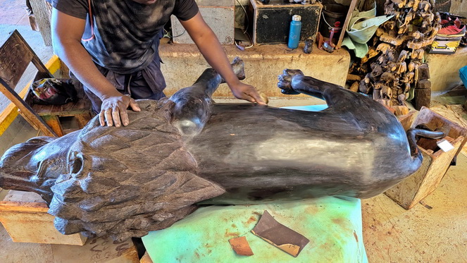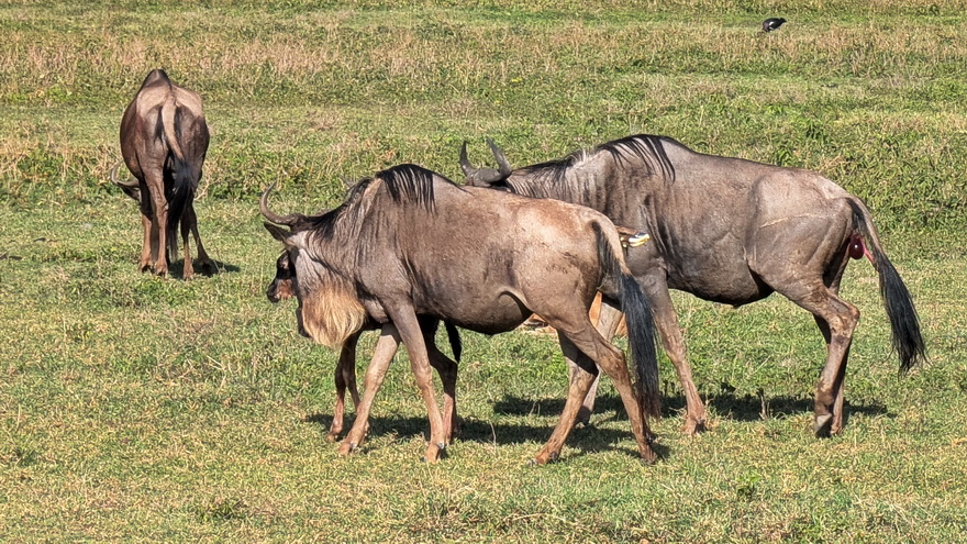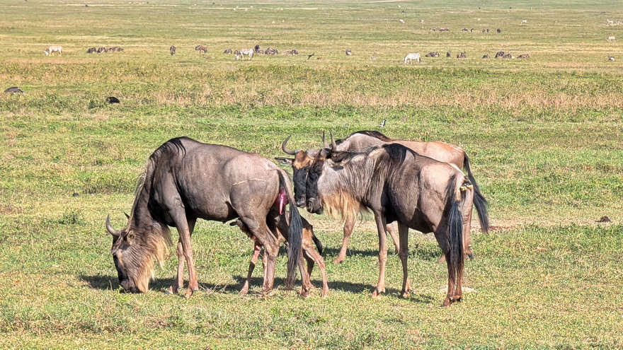 Ein Gnu hat gerade gekalbt, das zweite steht kurz davor.