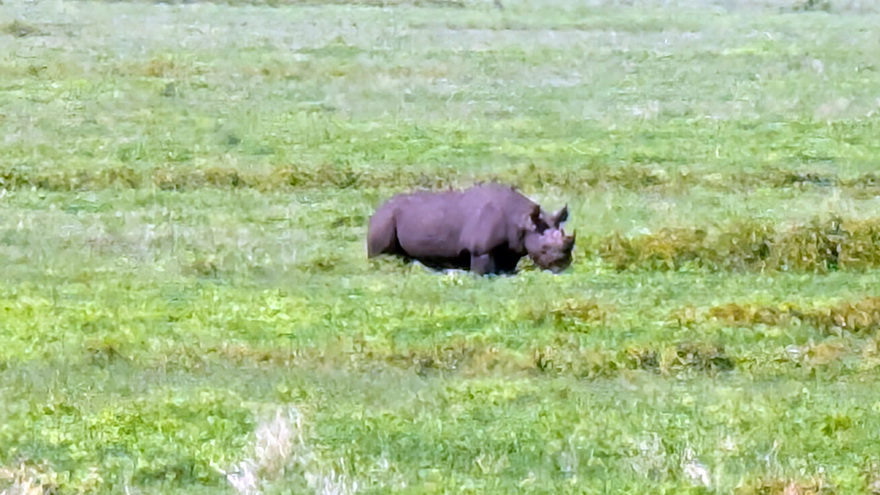 Das einzige Nashorn, das wir auf unseren Safaris zu Gesicht bekommen.