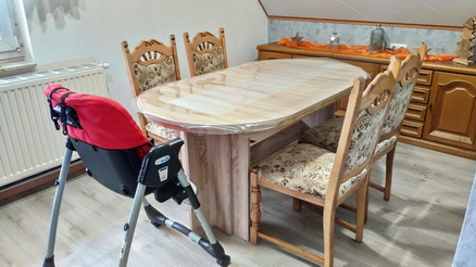 Unsere Ferienwohnung befindet sich im Dachgeschoß unseres Wohnhauses und hat eine Grundfläche von ca 79qm plus Terrasse und Balkon. Sie ist für den Aufenhalt von bis zu 5 Personen plus Reisebett-Aufbettung für Kinder und Kleinkinder ausgelegt. Auch Monteure sind herzlich willkommen.